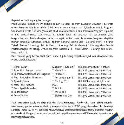 III 3,49 dengan masa studi rerata 3,1 tahun. Selain itu terdapat 108 wisudawan yang